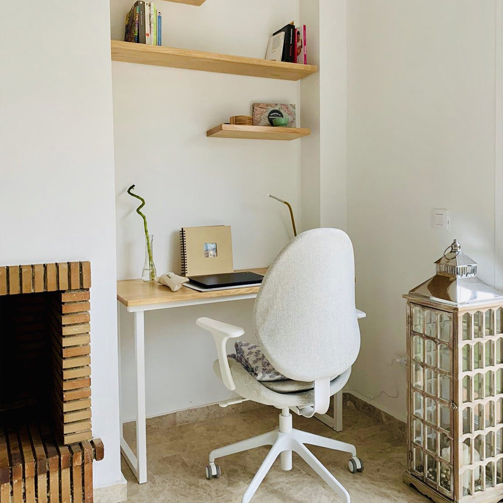 Escritorios THAKHEK. Prácticos y elegantes, de formas simples y estilizadas. Sobre de madera maciza de pino insignia de origen español de 22 mm de grosor que muestra el auténtico veteado natural de la madera. Cada pieza es única. Estos escritorios se montan muy fácilmente gracias a nuestro sistema de montaje rápido patentado easyKLIX©.