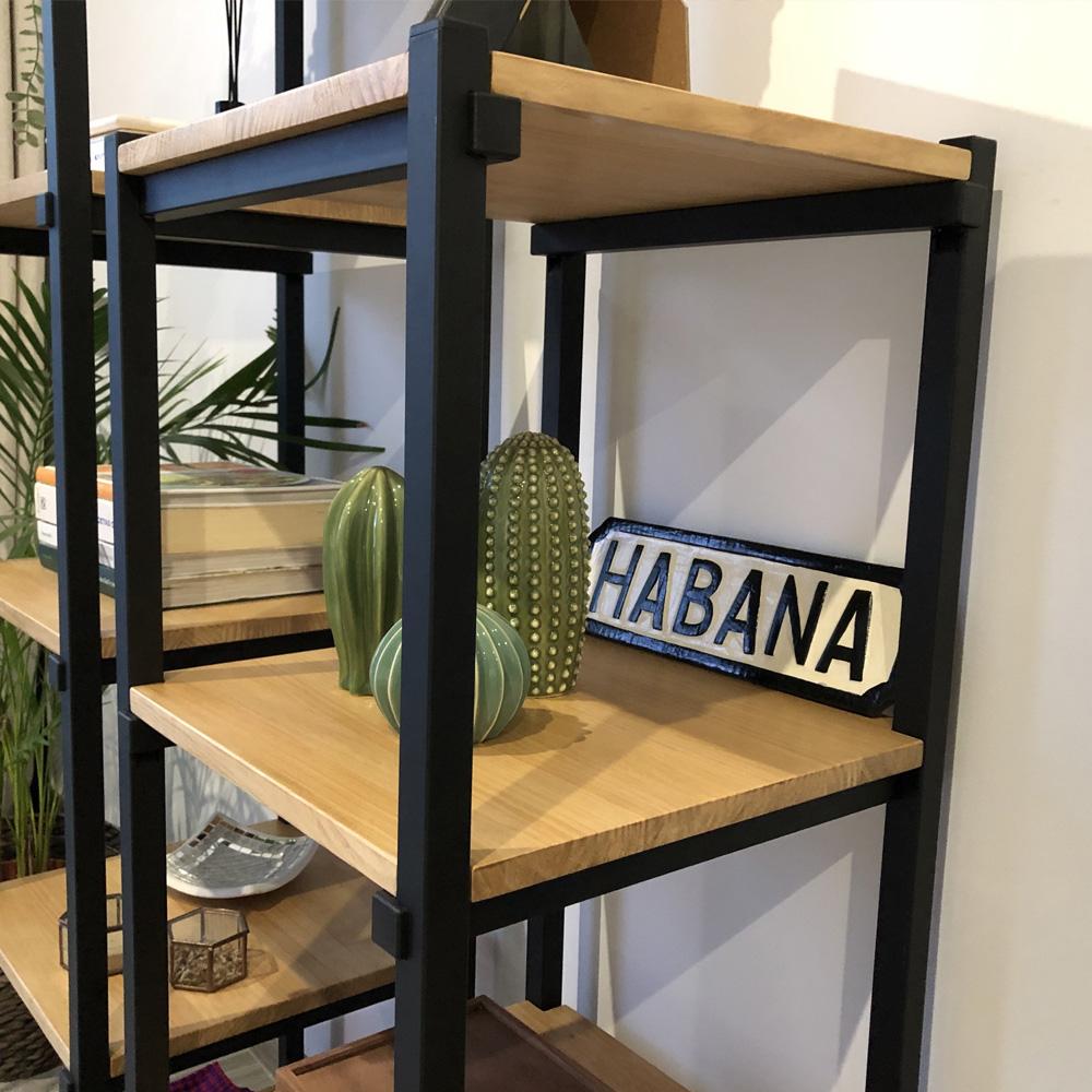 Estanterías POKHARA. Diseño industrial moderno, estas estanterías combinan metal y madera con un espíritu de sencillez y eficiencia. Las líneas depuradas la hacen ideal para decorar tu hogar de manera sobria y contemporánea. Las bases sencillas y su eficiencia estructural acentúan el modernismo del diseño.