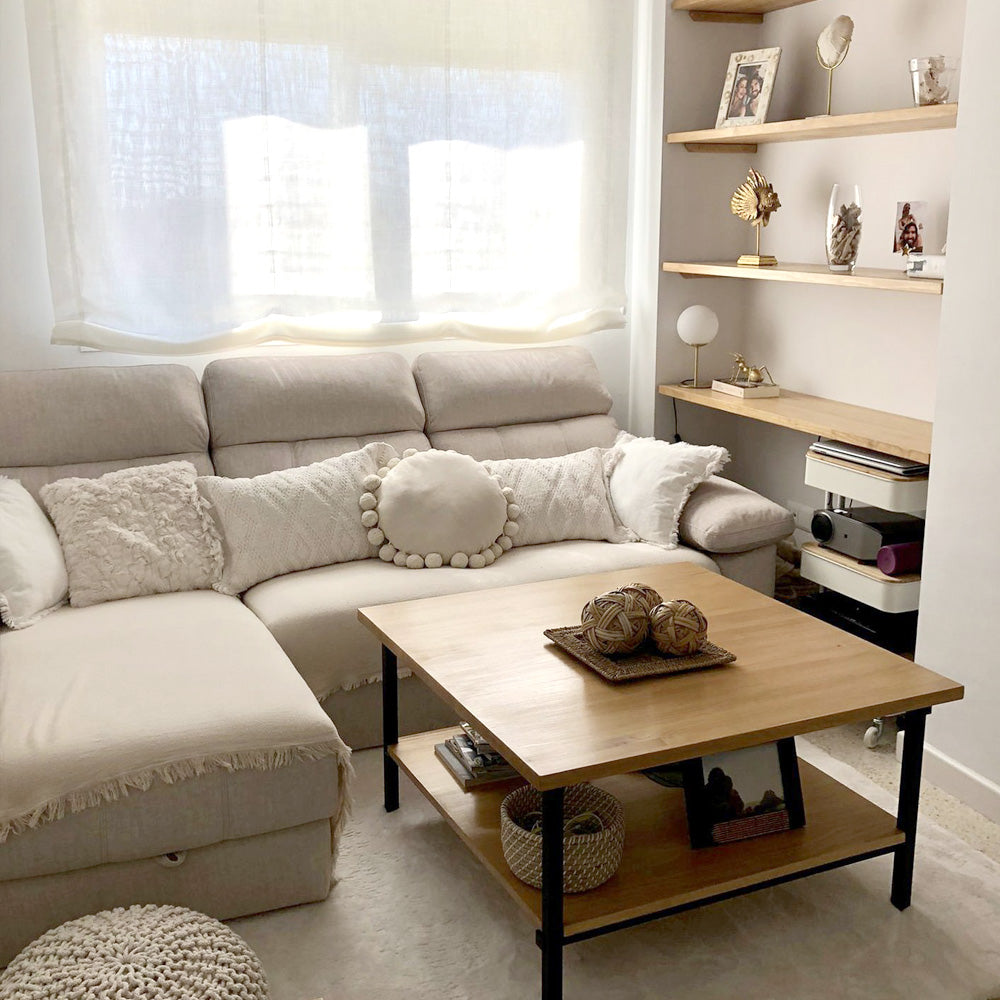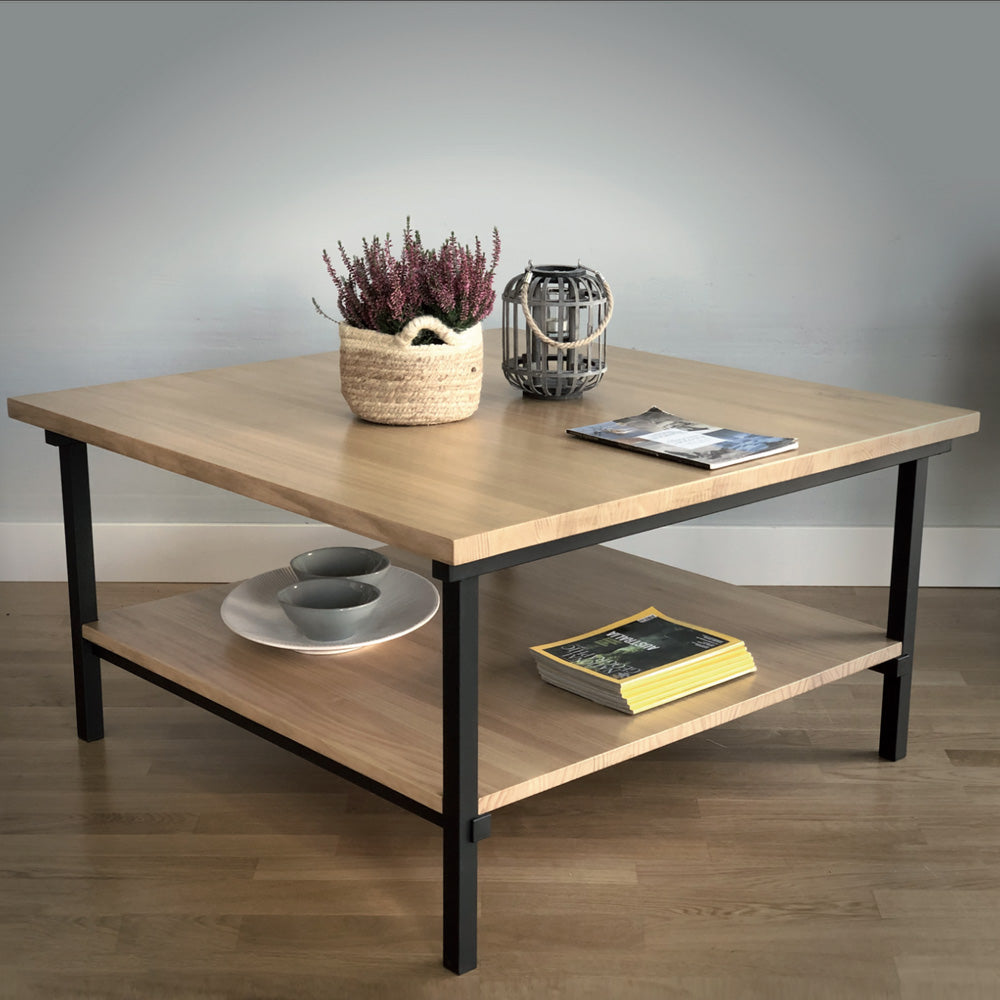 Mesas de centro ANGKOR. Dale autenticidad a tu zona de relax con esta mesa de centro de diseño industrial moderno. Práctica y elegante, de formas simples y estilizadas, ideal para todo tipo de estancias. Su tablero de madera maciza de 30mm de grosor muestra el auténtico veteado natural de la madera.