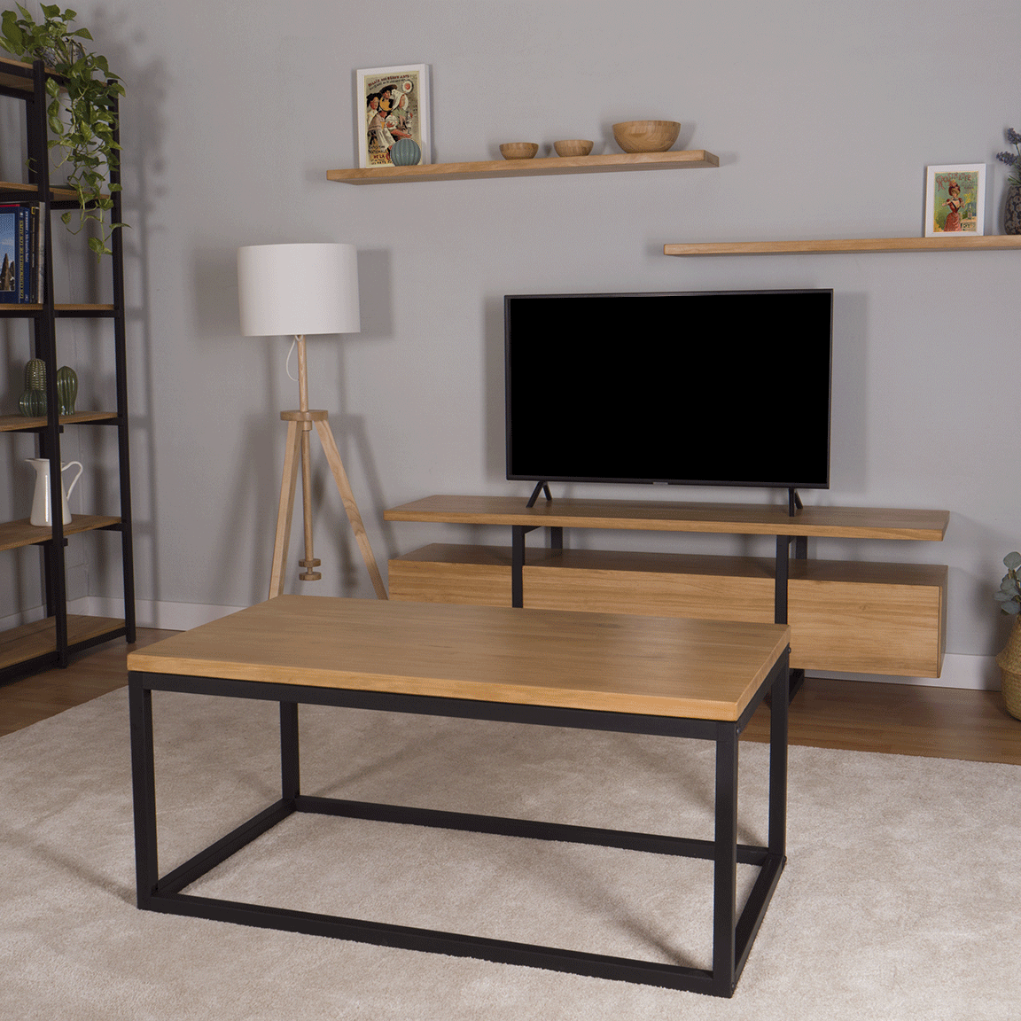 Por fin una mesa de centro polivalente y estética ¡al mismo tiempo! Podrás adaptar tu mesa a cada situación de una forma cómoda y rápida. Sus líneas simples y estilizadas la hacen ideal para todo tipo de estancias. Su tablero de madera maciza de 30mm de grosor muestra el auténtico veteado natural de la madera, nada de imitaciones en plástico ni resina.