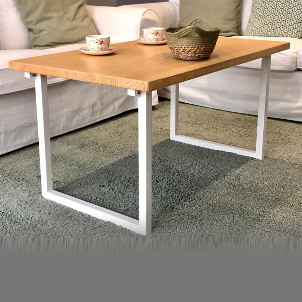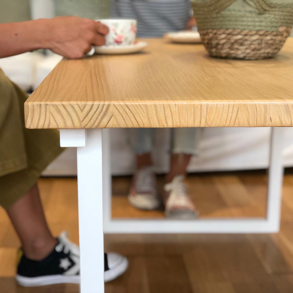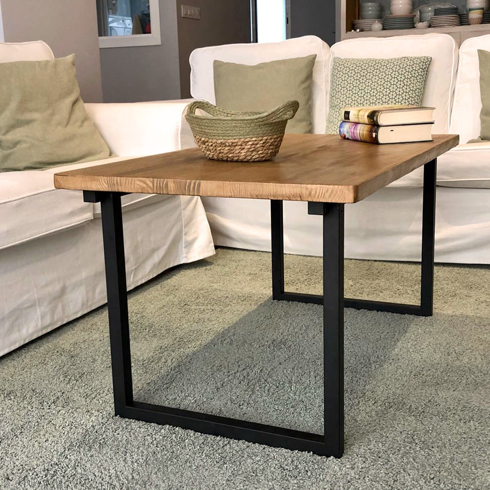 Mesas de centro MAKUA. Dale autenticidad a tu zona de relax con esta mesa de centro de diseño industrial moderno. Práctica y elegante, de formas simples y estilizadas, ideal para estancias minimalistas o industriales. Su tablero es de madera maciza de 30mm de grosor y muestra su precioso veteado natural, nada de imitaciones en plástico ni resina. Estas mesas de centro tienen una gran estabilidad y firmeza gracias al sistema easyKLIX© y sus patas metálicas en forma de U.