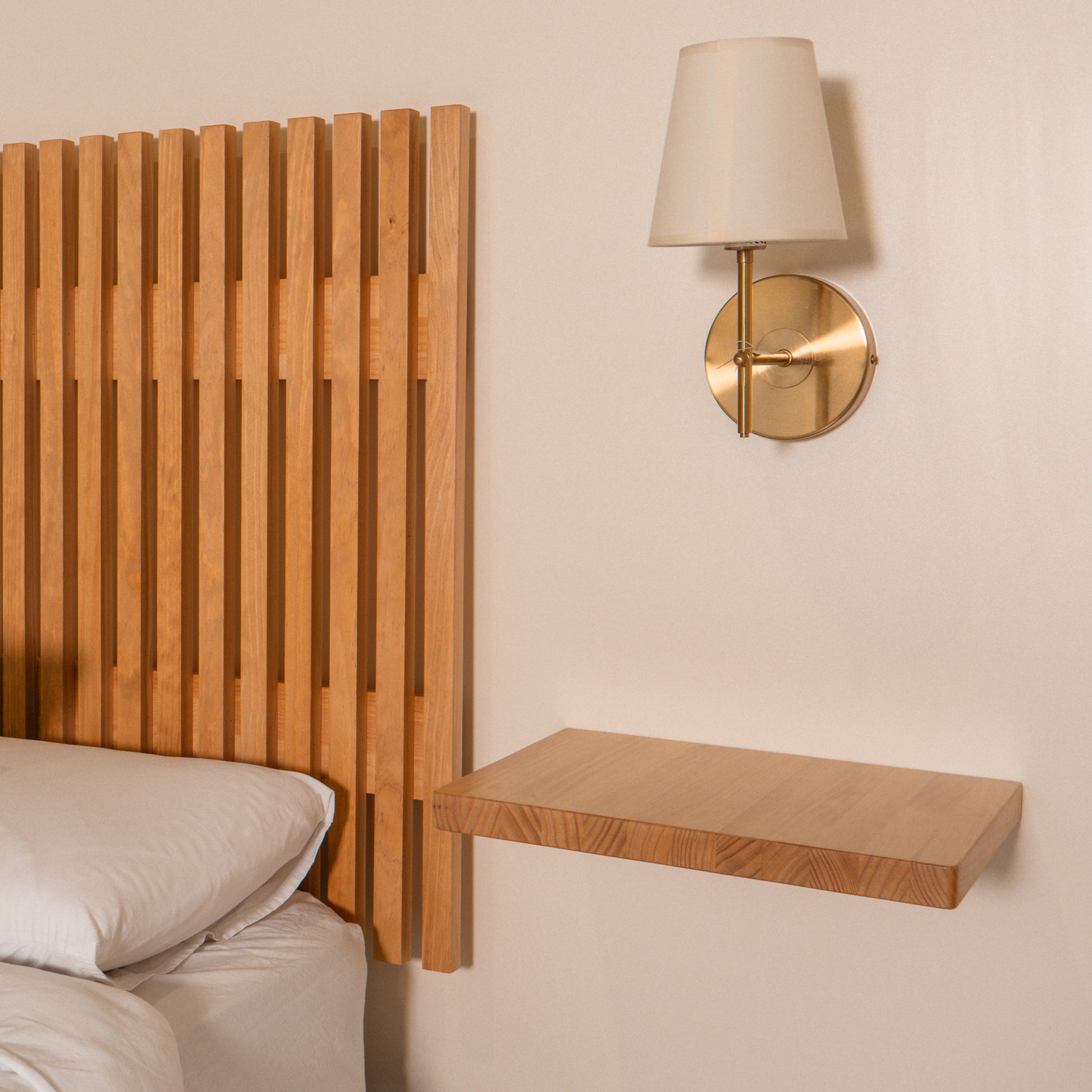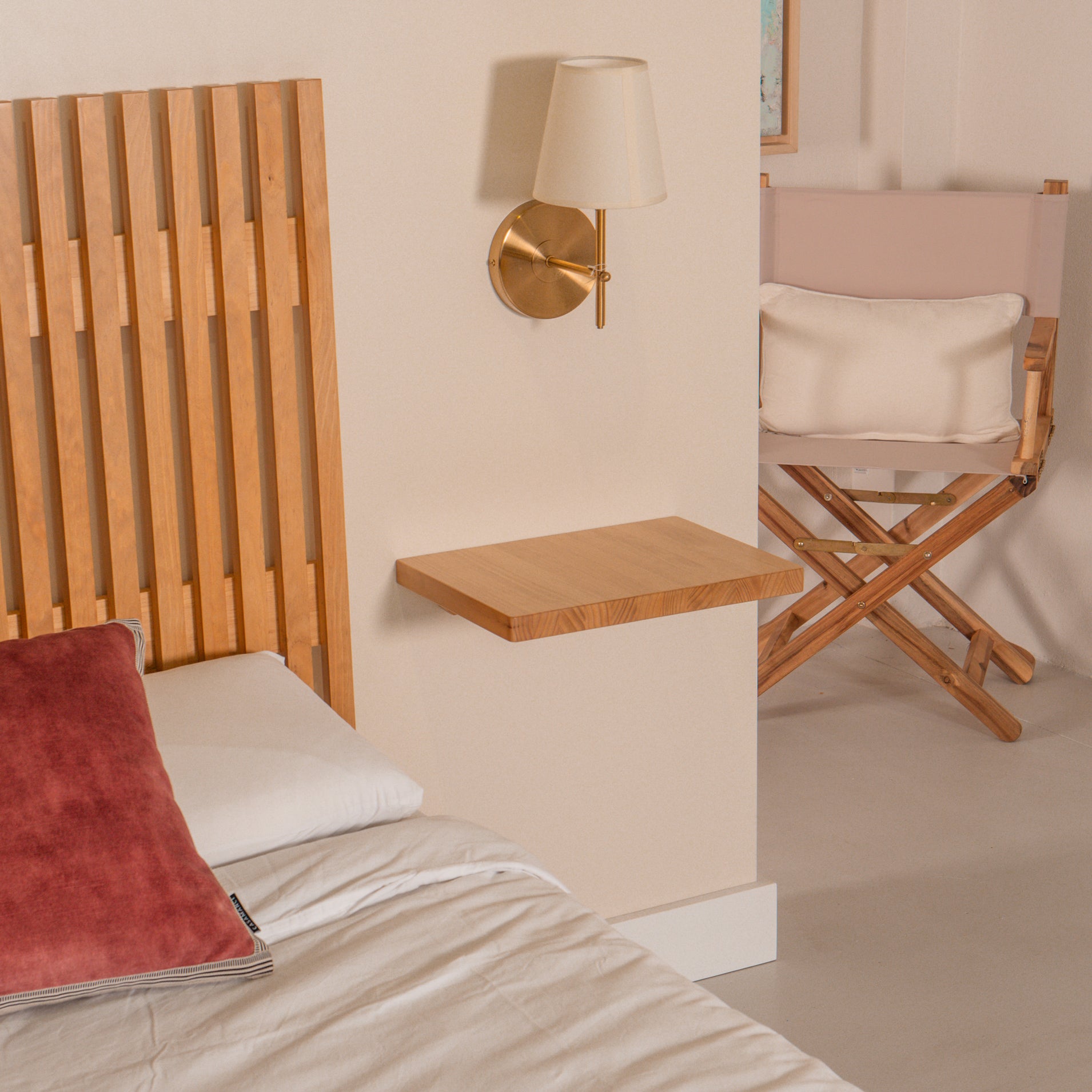 Mesita de noche flotante SAMDO de diseño minimalista, perfecto para los más prácticos y los que solo necesitan apoyar un libro o dejar el móvil cargando. Y si necesitas algo más de espacio siempre puedes colocar dos, una encima de otra y a la altura que desees.