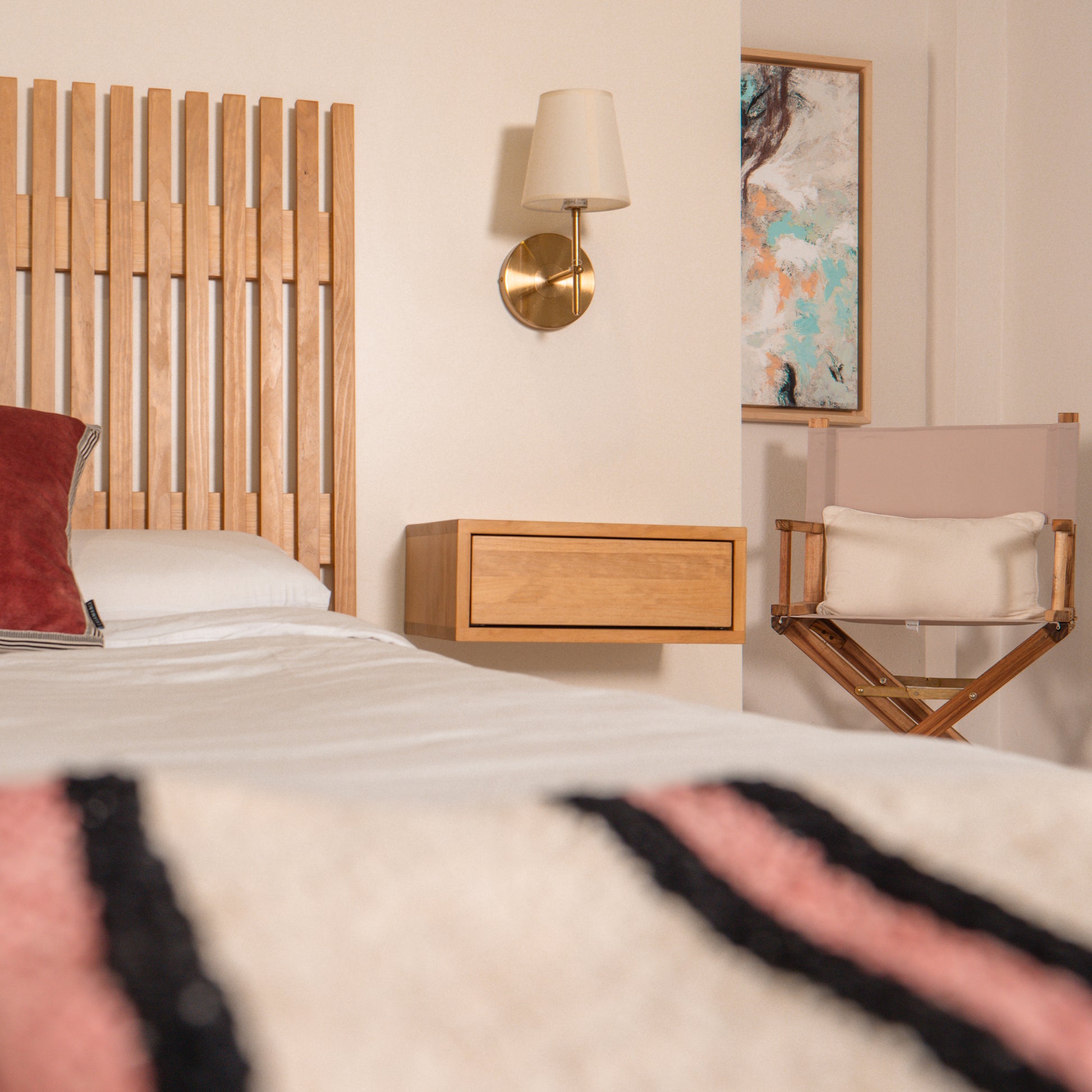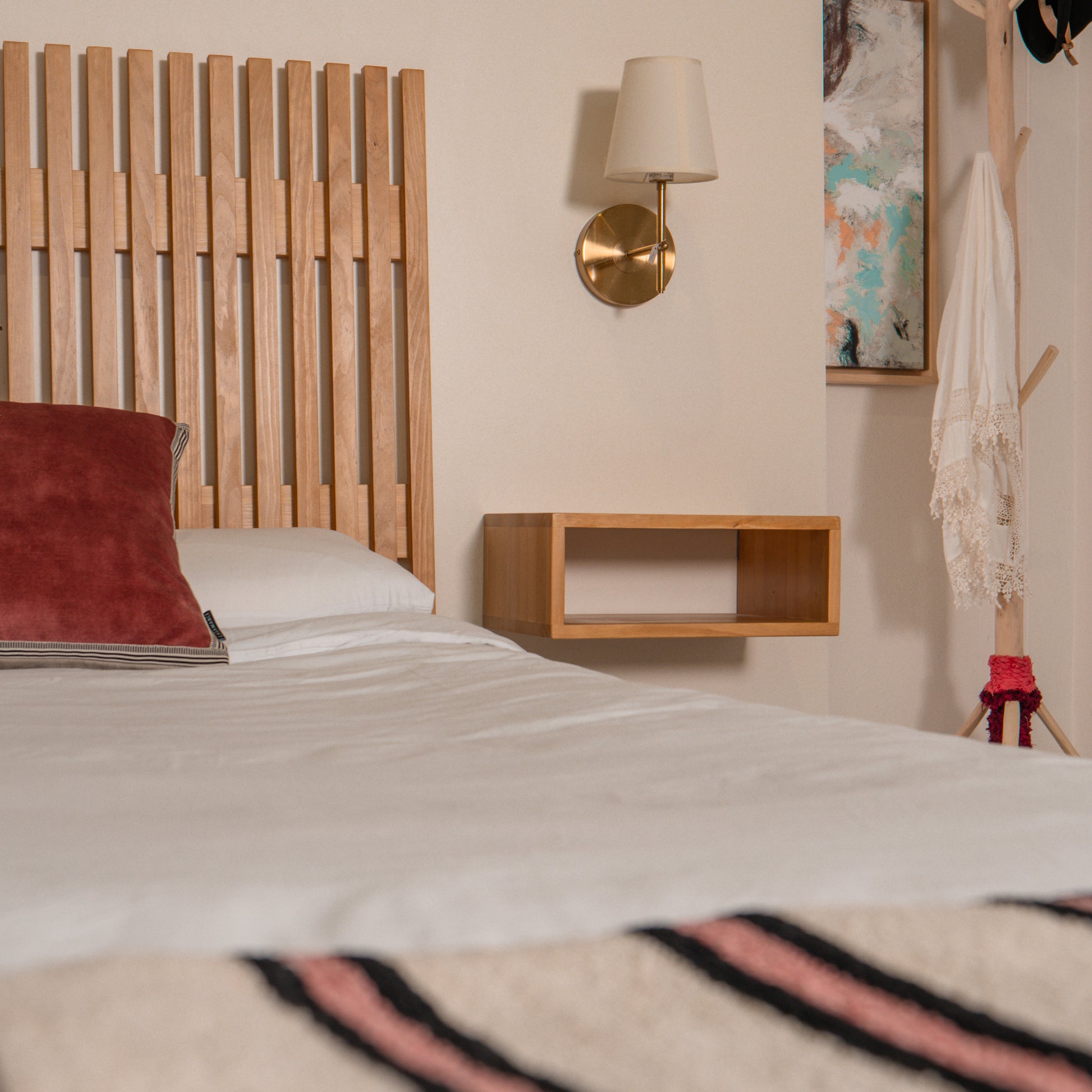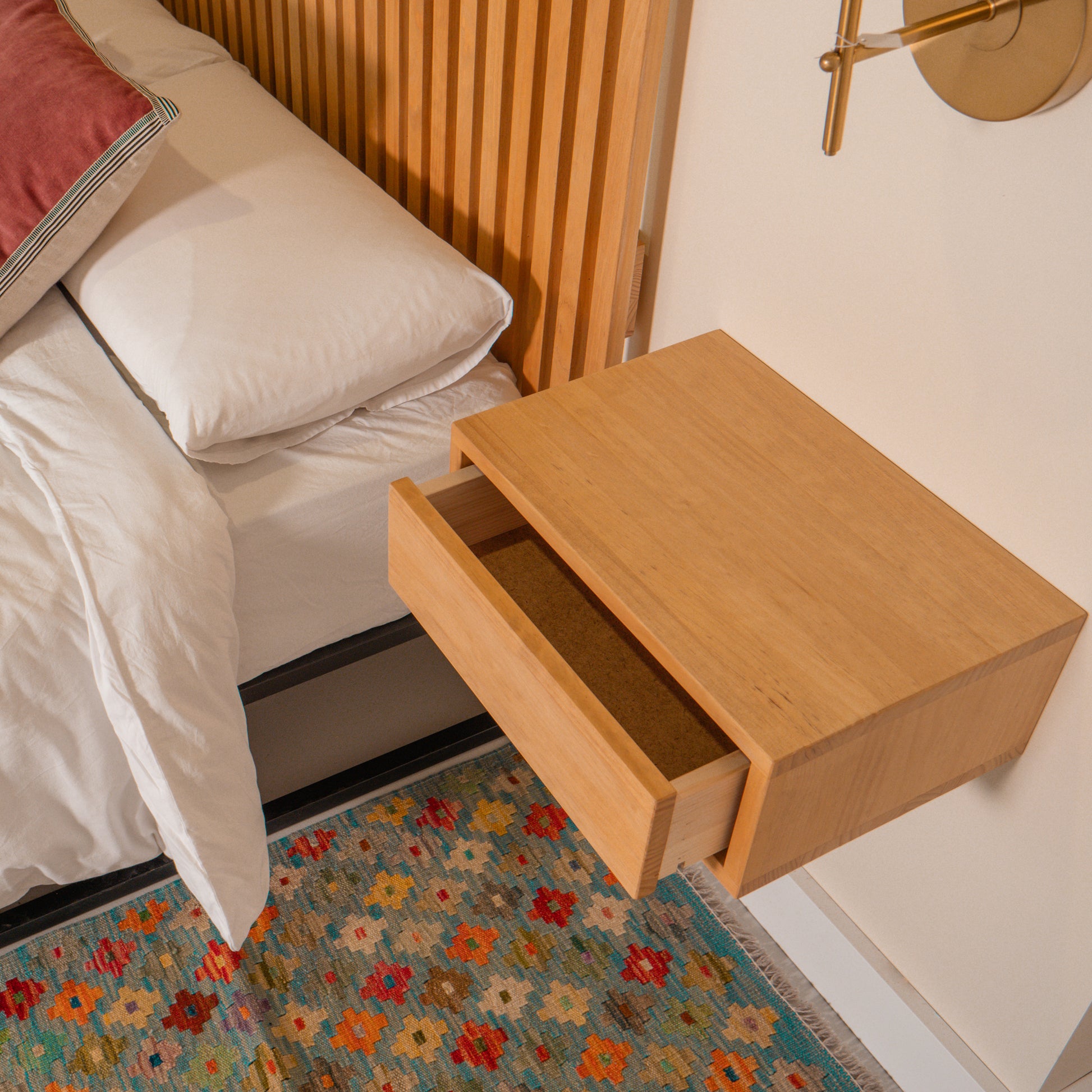 Mesita de noche flotante SIEM REAP. Vuestra gran favorita. Esta mesita de noche es sencilla y muy estética a la vez que práctica. La opción con cajón es perfecta para almacenar tus objetos personales libres de polvo y en la opción sin cajón podrás poner objetos decorativos a la vista o el último libro que estés leyendo.