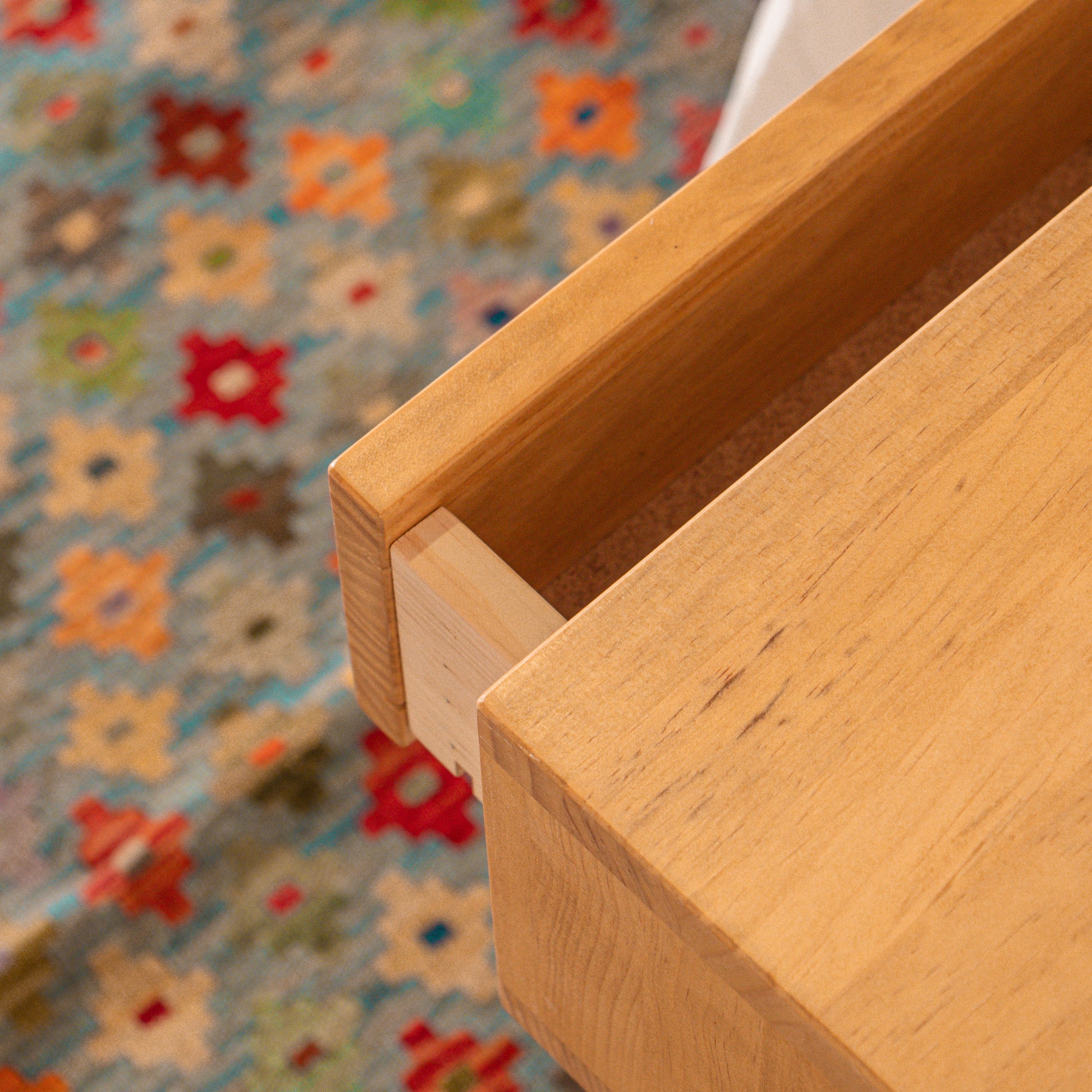 La opción con cajón lleva guías metálicas ocultas de deslizamiento suave y cierre/apertura PUSH. Funcionan fenomenal y eliminan la necesidad de tener tirador, dejando el frontal libre con un diseño limpio y muy funcional.