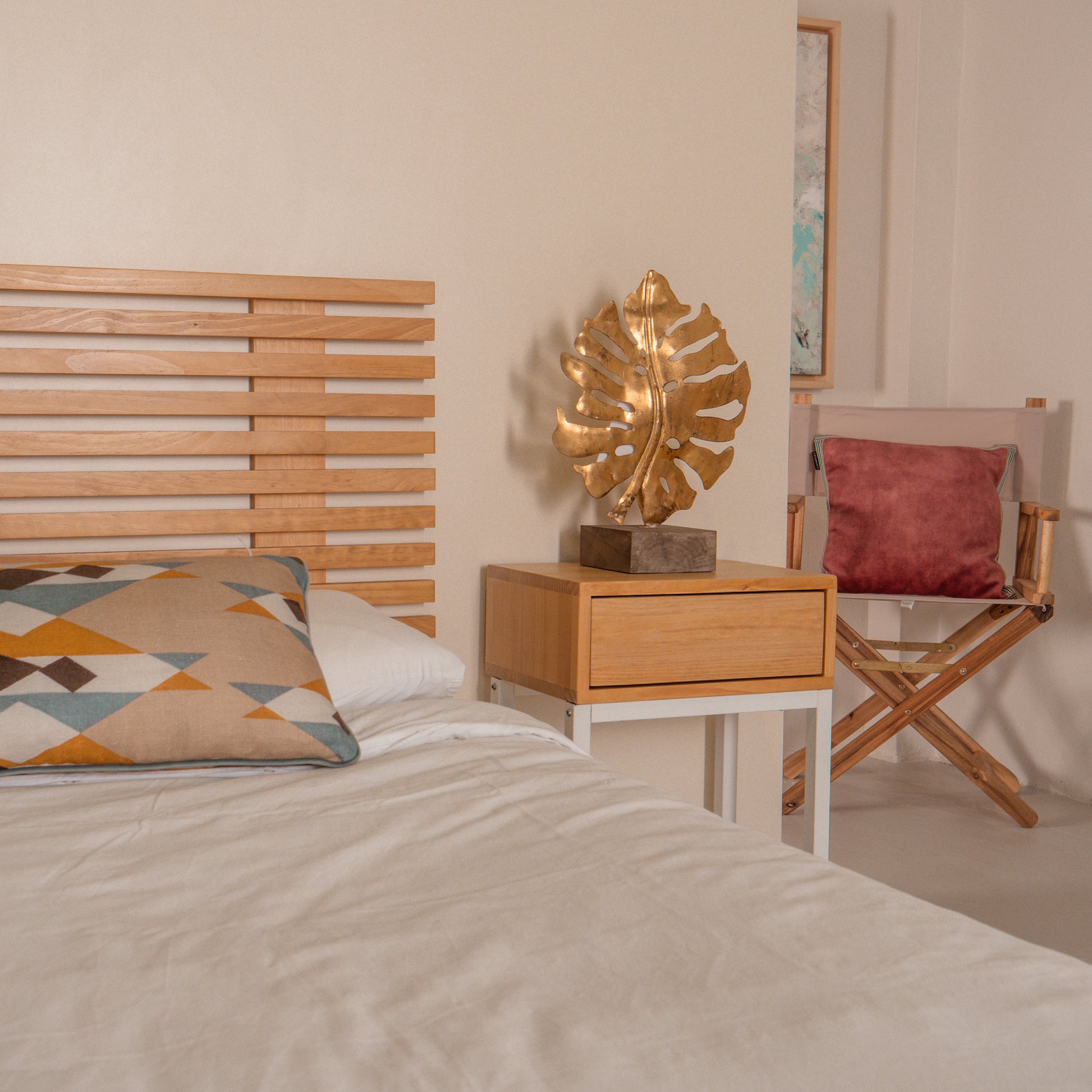 La opción con cajón es perfecta para almacenar tus objetos personales libres de polvo y en la opción sin cajón podrás poner objetos decorativos a la vista o el último libro que estés leyendo.