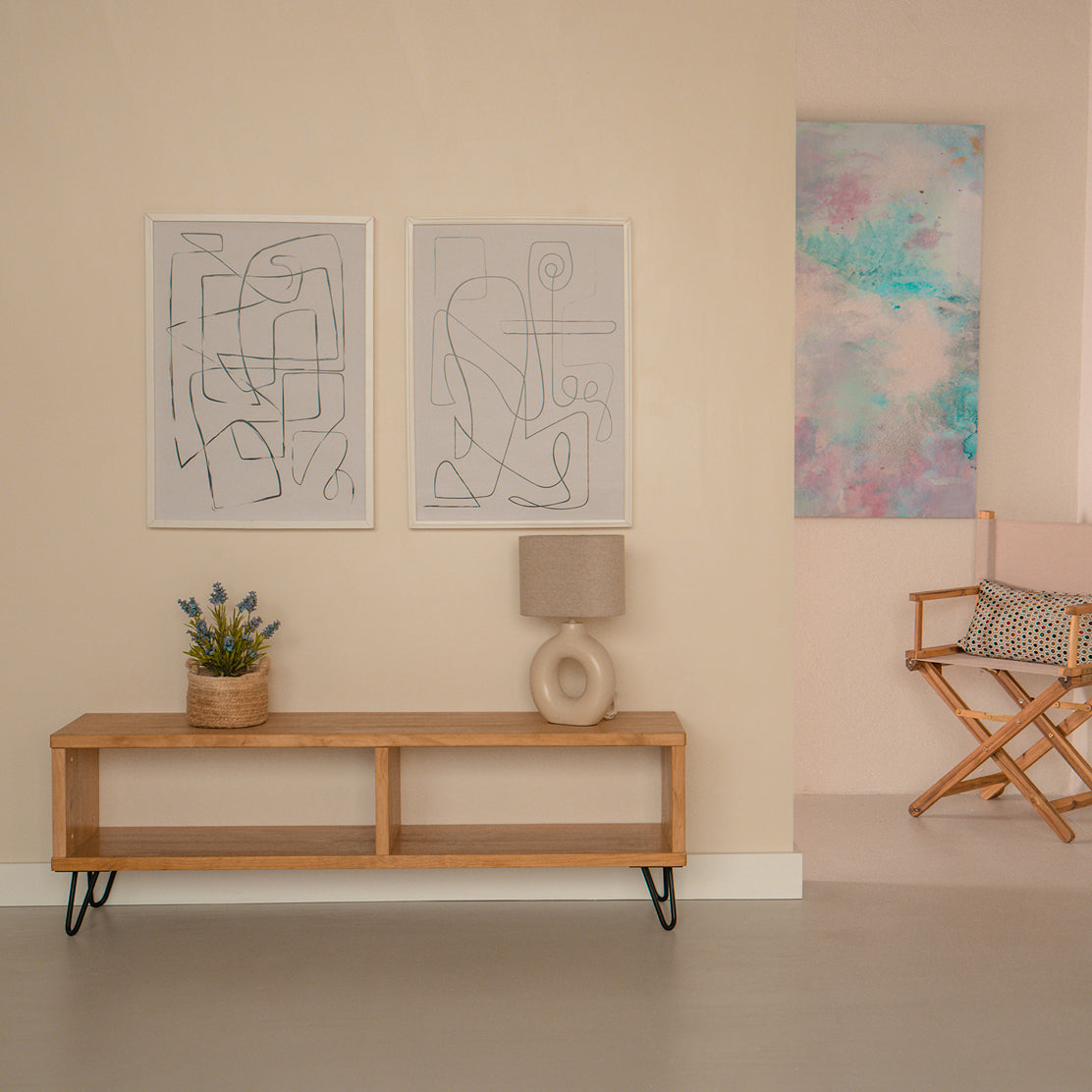 HONOLULU. Utilízalo tanto de mueble tv como de consola auxiliar o incluso como banco a los pies de la cama. ¡Con un diseño que no pasa de moda y un acabado impecable! Fabricado en madera maciza de 3cm de grosor, el mueble HONOLULU es muy robusto y está pensado para durar toda la vida.