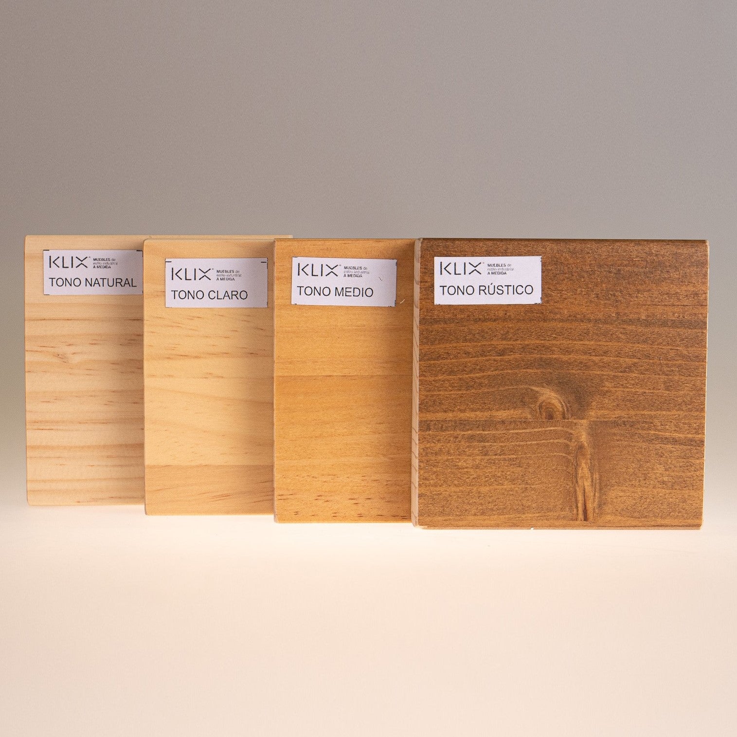 Dentro de la misma tonalidad, el "natural" conserva el tono de la madera, el "claro" tiene un toque más de color amarillo, el "medio" es más tostado, como miel, y el "rústico" es el más oscurito pero sin tapar la veta de la madera, acercándose más al marrón.