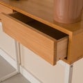 Gracias a estar realizado en madera maciza, el cajón presenta gran robustez. Los cajones se abren con una leve presión gracias al sistema de apertura "push", prescindiendo así de tiradores.